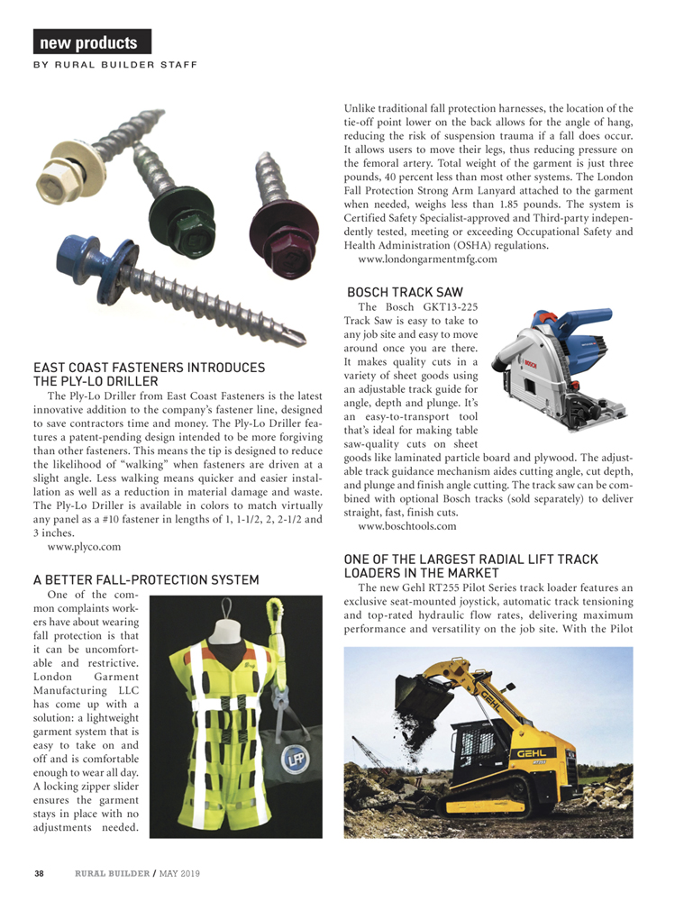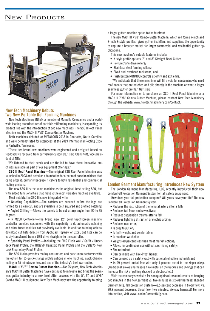 Our London Fall Protection Garment System was featured in the Metal Roofing Magazine/The Idea Book and Rural Builder Magazine in May 2019.